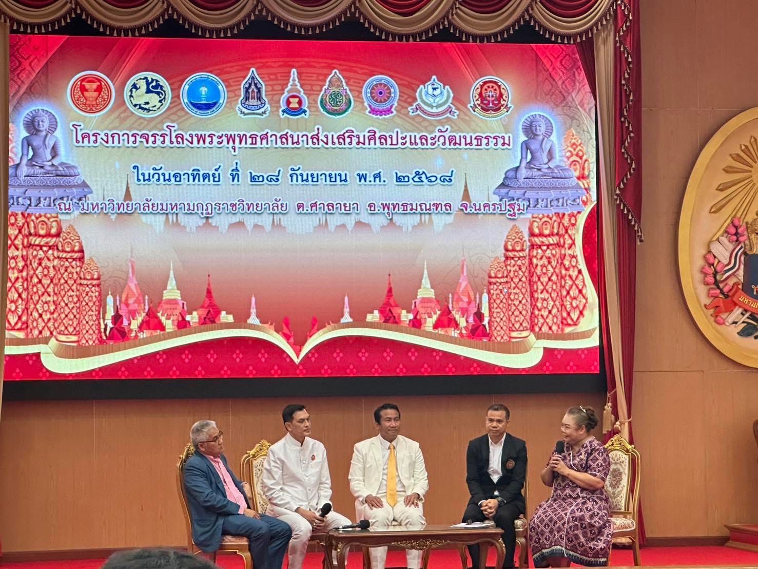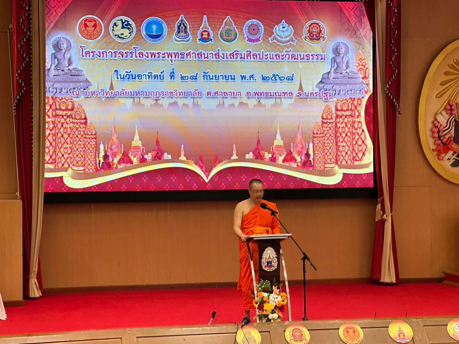 วันที่ 28 กันยายน 2568 พระพรหมวัชรธีราจารย์, ศ.ดร. อธิการบดีมหาวิทยาลัยมหาจุฬาลงกรณราชวิทยาลัย มอบหมายให้ พระมหาจีรวัฒน์ กนฺตวณฺโณ,รศ.ดร. ผู้อำนวยการศูนย์อาเซียนศึกษา ปฎิบัติหน้าที่แทนอธิการบดีในการกล่าวเปิดงานโครงการจรรโลงพระพุทธศาสนา ส่งเสริมศิลปะเเละวัฒนธรรม