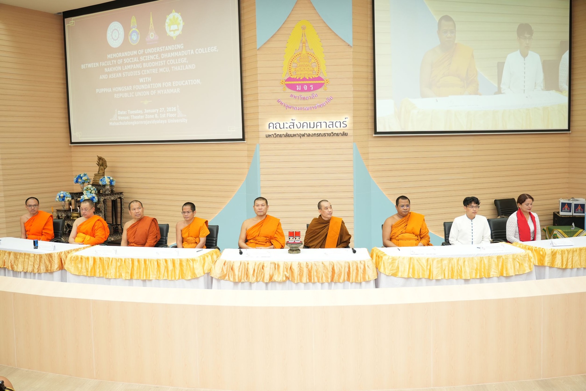 พิธีลงนาม MOU ระหว่าง วิทยาลัยพระธรรมทูต คณะสังคมศาสตร์ ศูนย์อาเซียนศึกษาและวิทยาลัยสงฆ์นครลำปาง ร่วมกับมูลนิธิ Puppha Hongsar แห่งสาธารณรัฐสหภาพเมียนมา