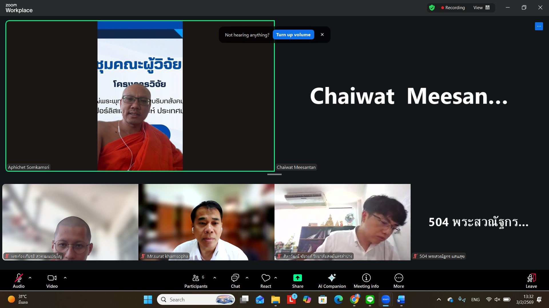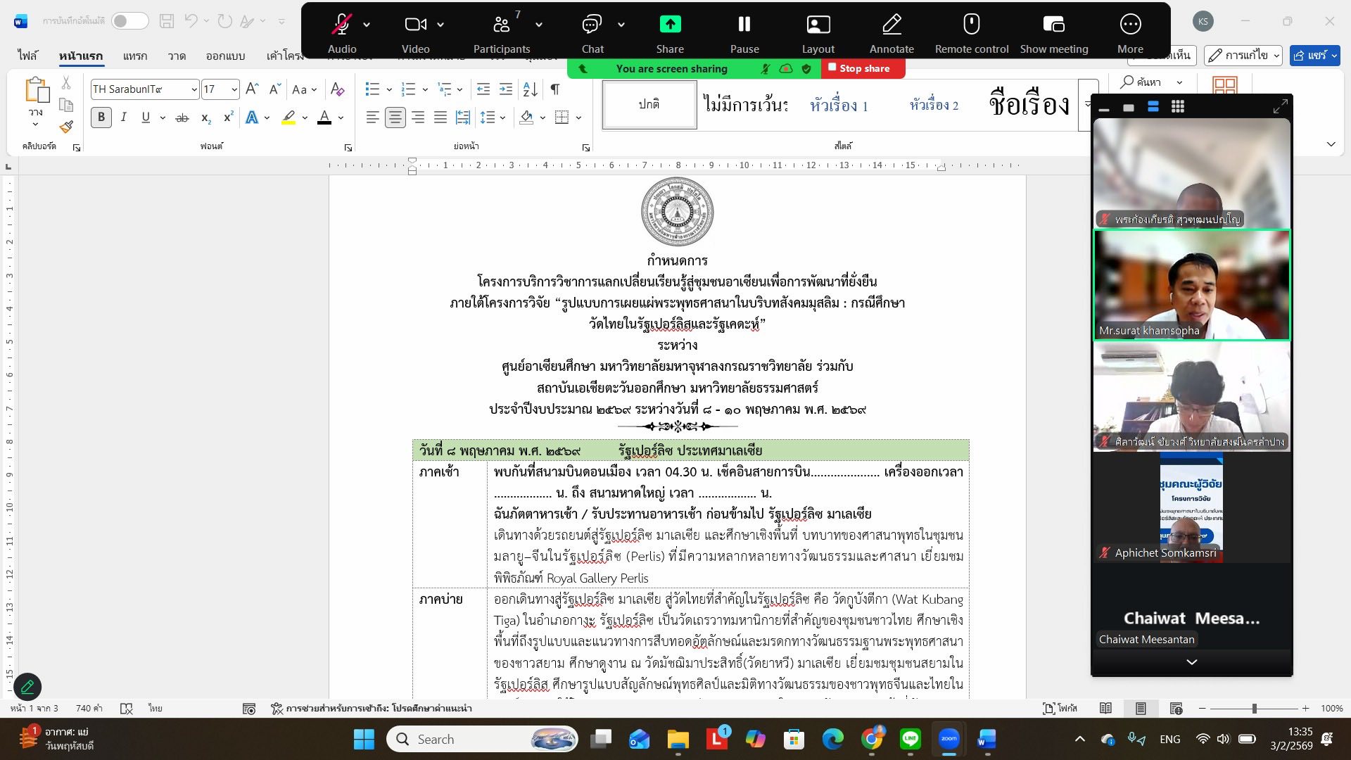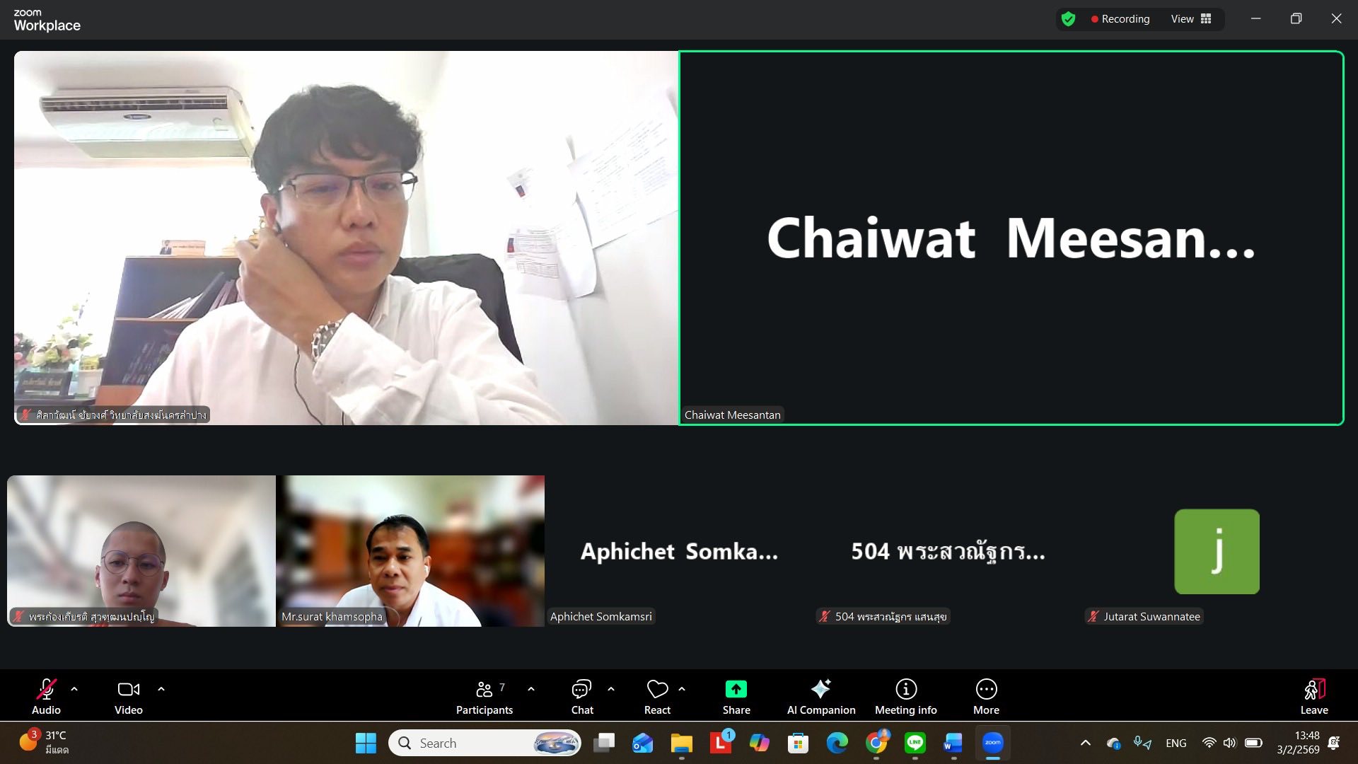 พระมหาจีรวัฒน์ กนฺตวณฺโณ,รศ.ดร. ผู้อำนวยการศูนย์อาเซียนศึกษา มอบหมายให้ พระครูสุภัทรธรรมบัณฑิต, ผู้อำนวยการส่วนงานบริหาร และ ดร.สุรัตน์ คำโสภา ผู้อำนวยการส่วนวิจัย สารสนเทศและบริการวิชาการ หารือและติดตามความก้าวหน้าโครงการวิจัย ร่วมกับคณะผู้ร่วมวิจัยโครงการวิจัยรูปแบบการเผยแพร่พระพุทธศาสนาในประเทศมาเลเซีย